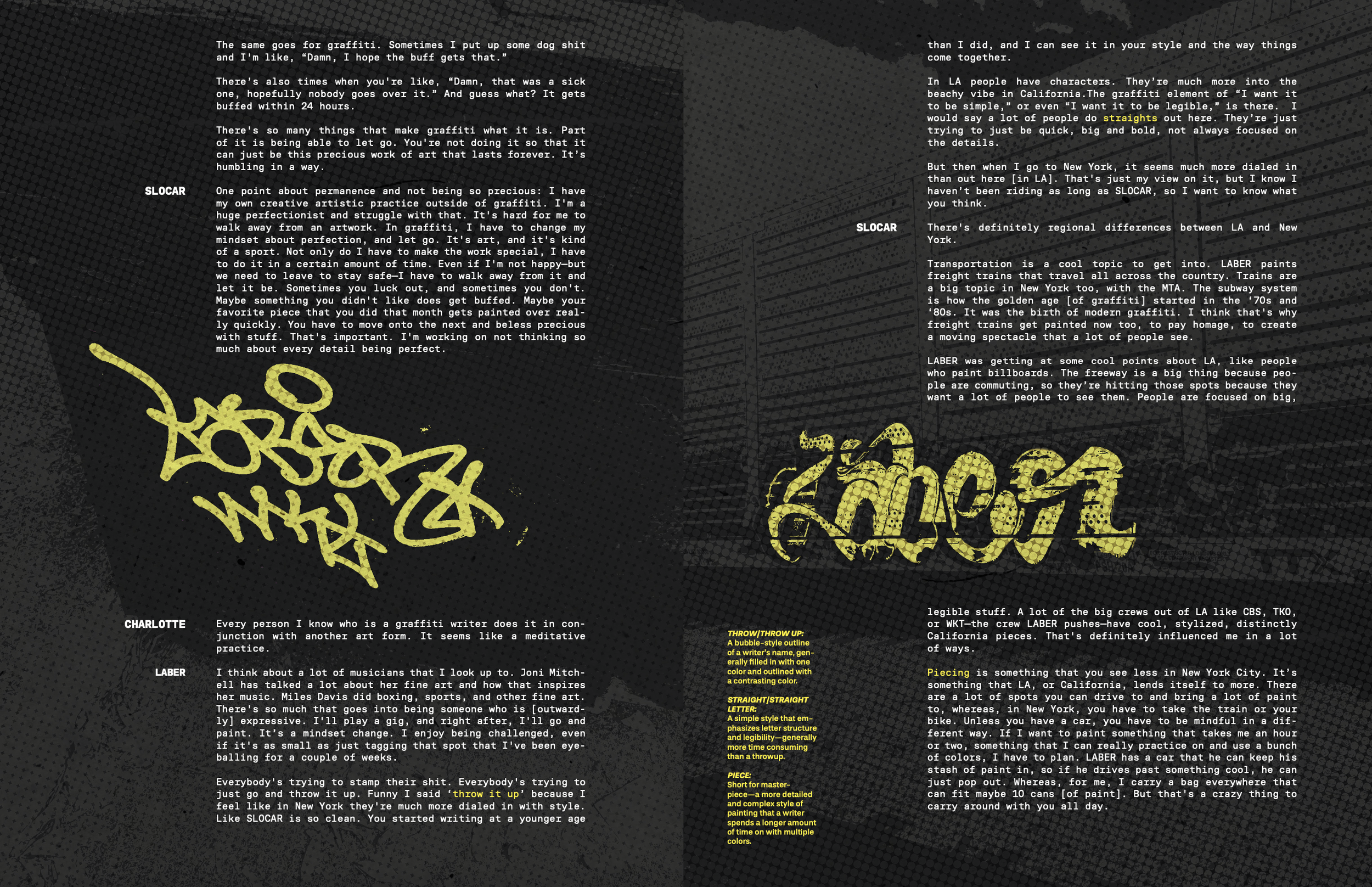 Featuring Graffiti artists LABER and SLOCAR interviewed by Charlotte Shelton. All Graffiti courtesy of the artists.